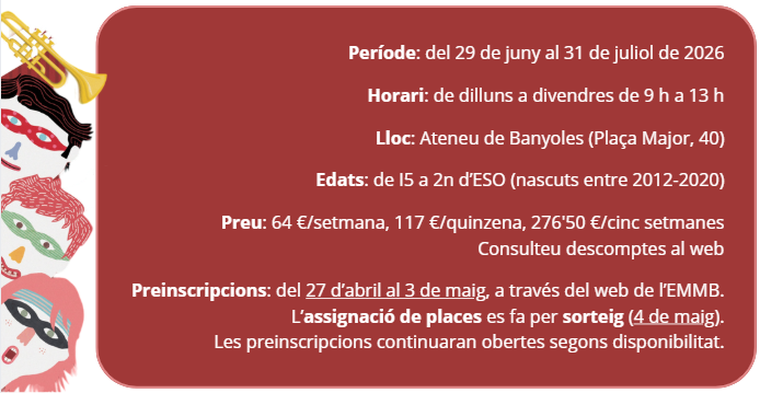 Un any més, arriba el casal d'estiu Que Comenci!, una proposta de l'EMMB que s'organitza conjuntament amb l’Aula de Teatre i que convida infants i joves a endinsar-se, d'una manera lúdica, en el món de les arts escèniques.